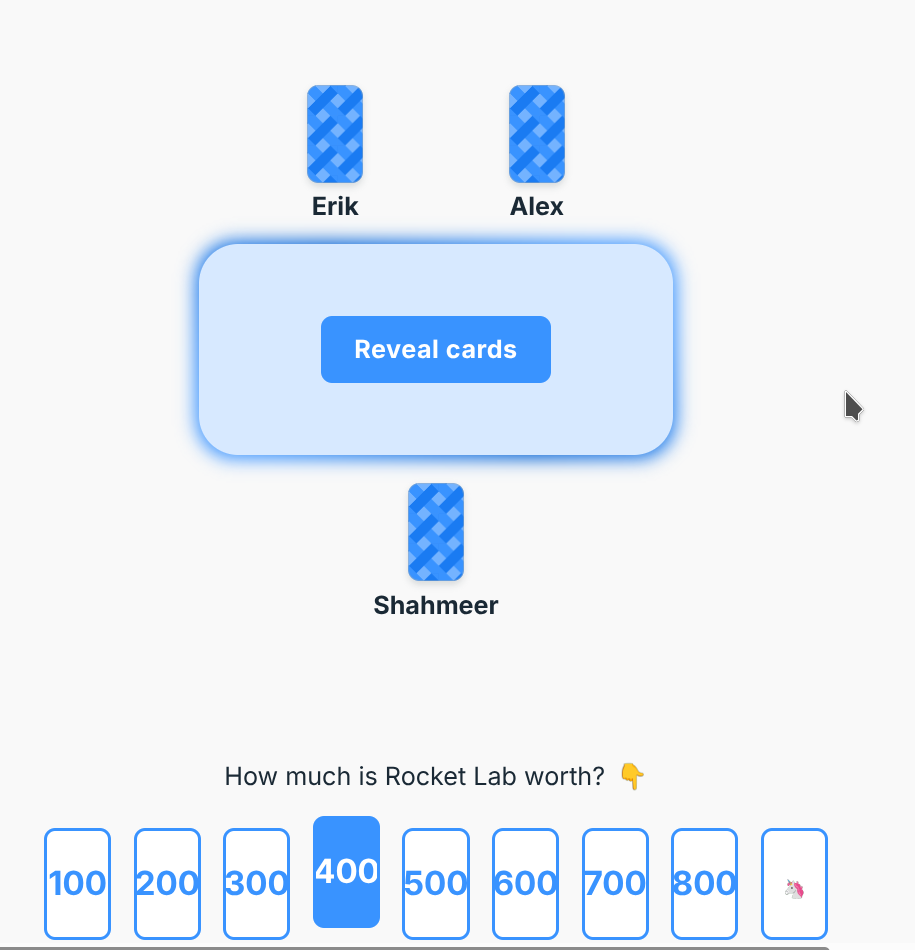 22 July 2025. Introducing the "Planning Poker but for valuations" houseparty game.