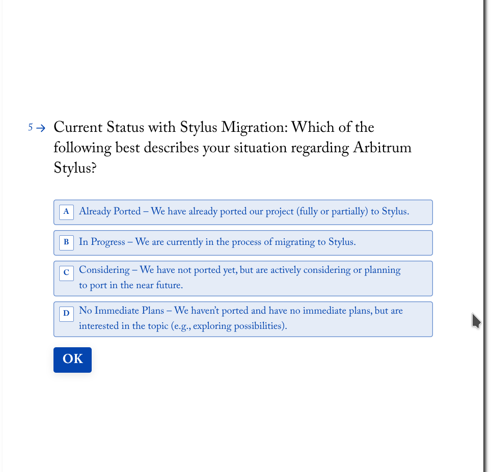 StylusPort, a tool to convert Solana projects to Stylus, is looking for people to fill out a 5 minute survey. If you’re building in the Stylus ecosystem, be sure to fill out their Typeform: